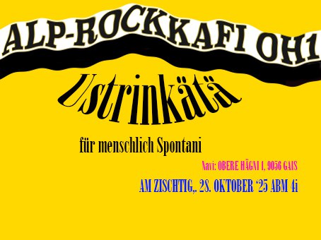 Infolge einer familiären Angelegenheit, bleibt das ALP-ROCKKAFI OH1 morgen Samstag 25.10.25 GESCHLOSSEN. Sonntags, 26.10.25, wie gewohnt geöffnet.